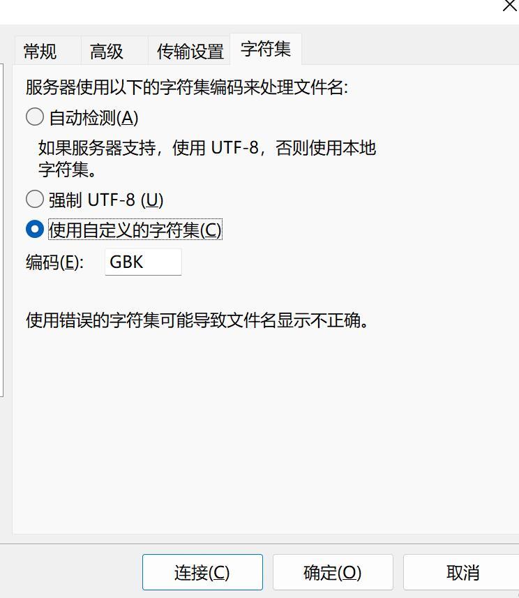 PS:如果出現中文目錄亂碼的問題,可以通過在SFTP客戶端里配置字符集來解決:
