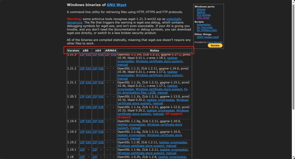 按照需要的版本下載 wget 壓縮包,地址為: