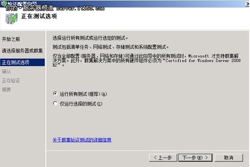 當兩個節點安裝完群集服務后,我們需要運行群集配置驗證程序,來檢查節點服務器、網絡和存儲設備是否符合群集要求。