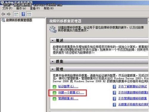 點擊故障轉移群集管理器中的“創建一個群集”,如下圖所示: