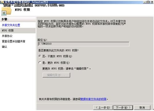 接下來,需要設置此文件夾的NTFS的權限,可以根據需要進行更改,我們在此就不做修改了。