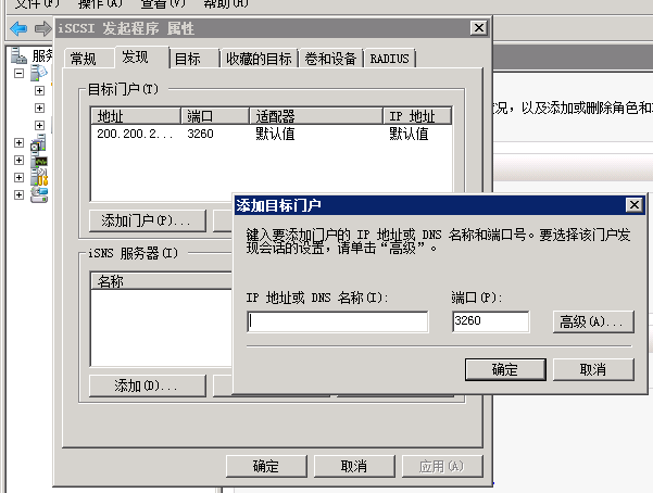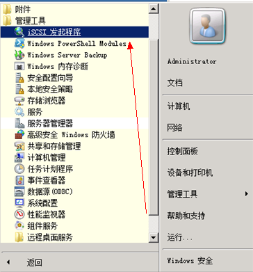分別再A 和 B上作這一步操作,win2008系統自帶的有ISCSI initiator ,開始----管理工具--iscsi就可以打開。