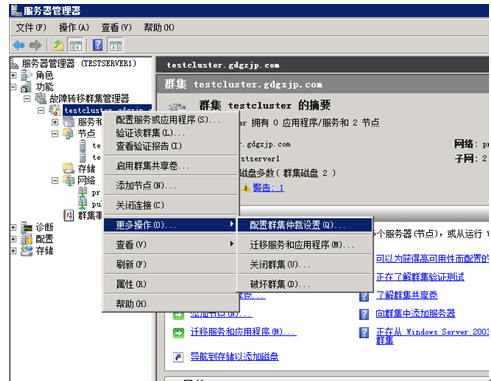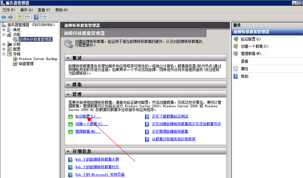 通過服務器管理窗口中的功能頁面中,添加功能,選擇故障轉移群集,安裝好了之后重啟一下系統,進入系統之后,在管理工具中打開故障轉移群集管理器