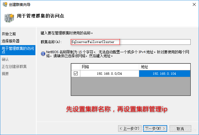 3、設置集群名稱、管理IP并確認(管理IP是能連通的閑置IP,不是服務器)