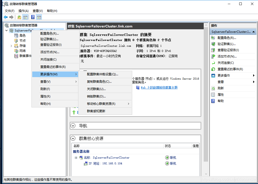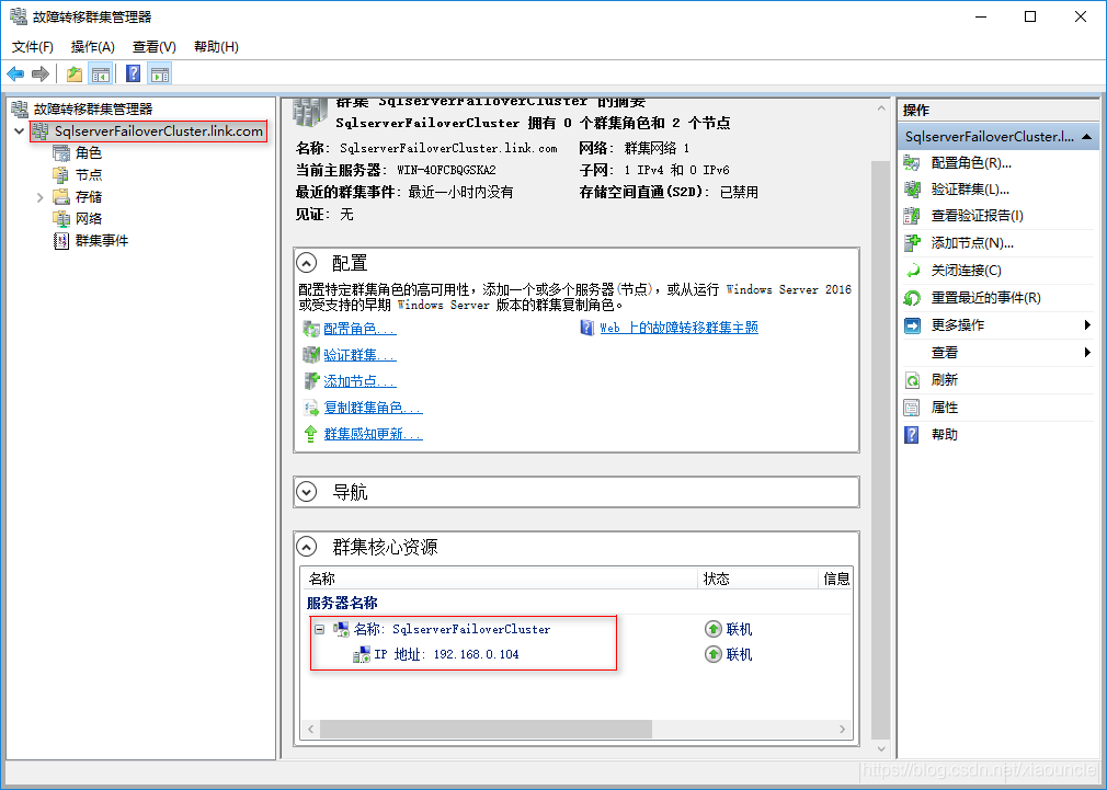 1、打開故障轉移集群管理器