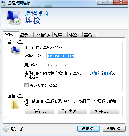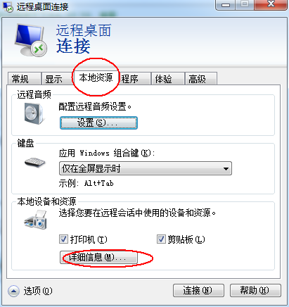 - 點擊“選項”按鈕,打開遠程連接選項卡