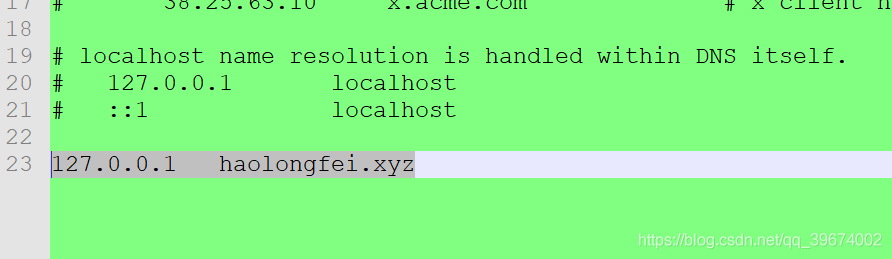 按照圖中路徑找到hosts文件打開并添加 127.0.0.1 haolongfei.xyz
