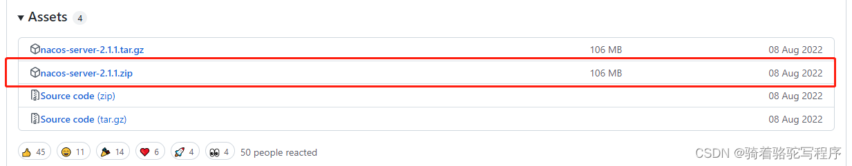 1、在nacos官網(https://github.com/alibaba/nacos/releases)選擇具體某個版本進行下載