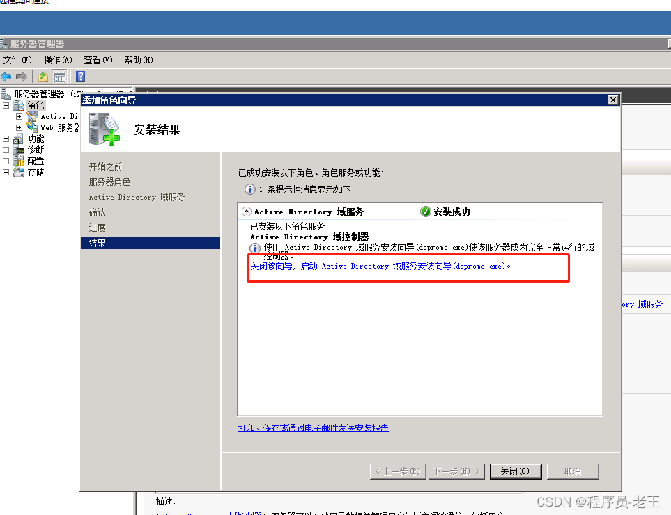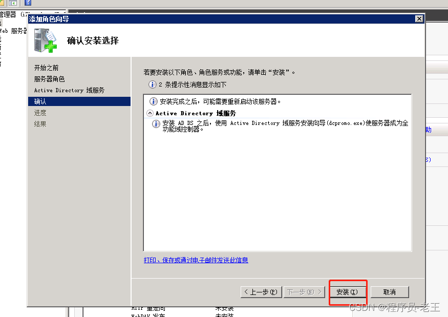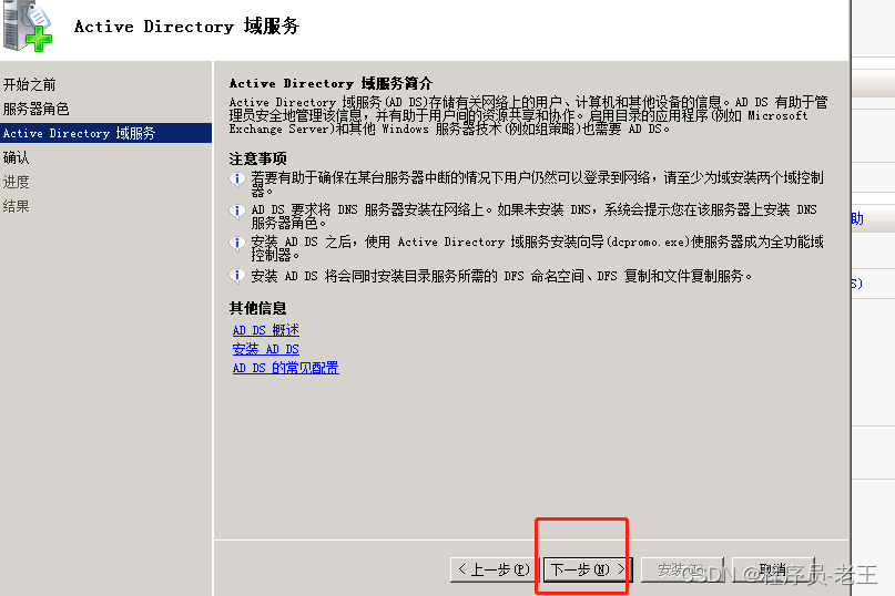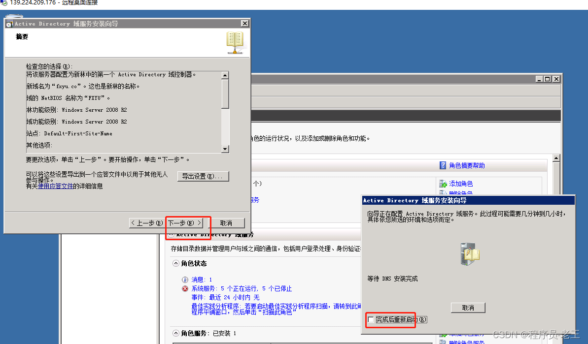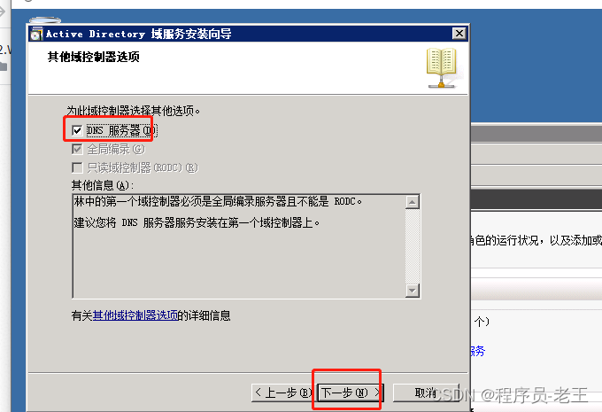 添加域服務,域服務高度依賴DNS也會一并安裝