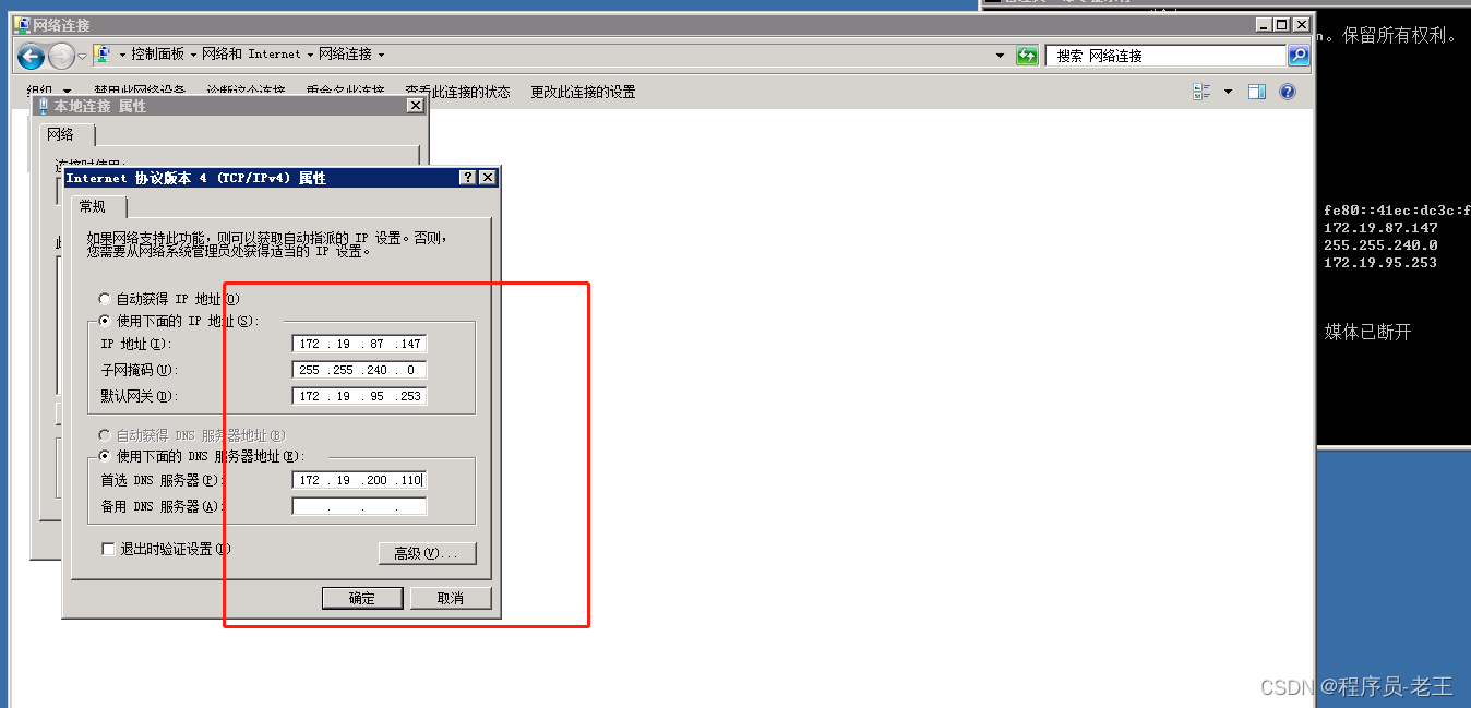 下面這一步是配置dns的ip,需要修改ip4的ip和dns為靜態ip