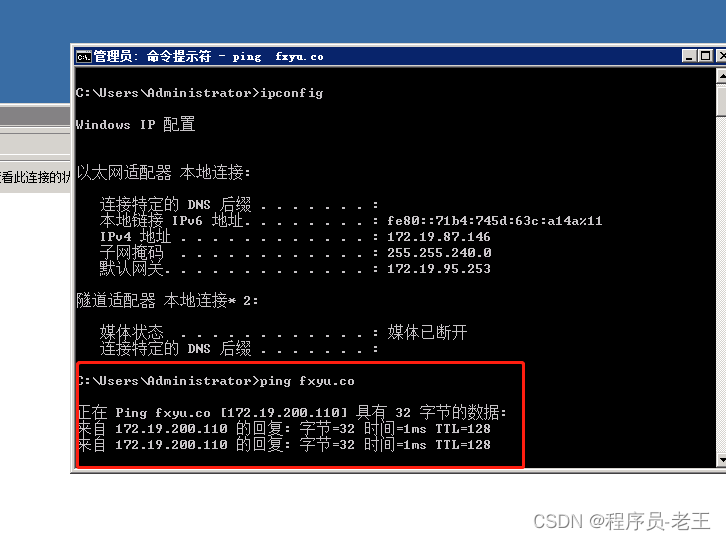 測試是否能ping通域地址(fxyu.co)