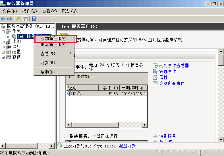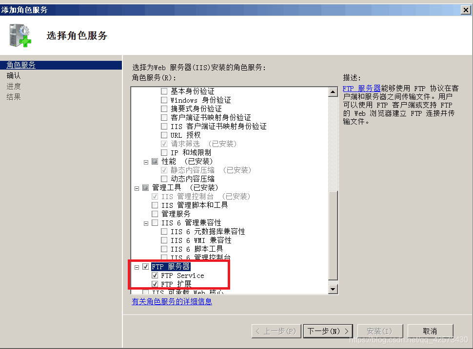 1.打開服務器管理器,單擊Web服務器,右擊選擇添加角色服務,勾選FTP服務器,按照下一步進行安裝