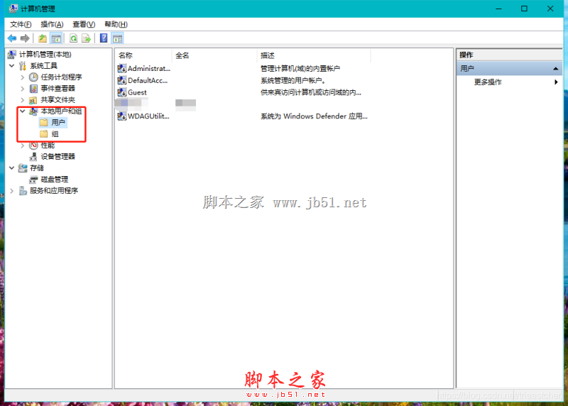 1)打開計算機管理,Win10和Server打開方式不同,自行百度,在左側找到用戶,單擊。如果打開計算機管理沒有該選項說明操作系統為家庭版或者其他不支持的版本,需要更換操作系統。