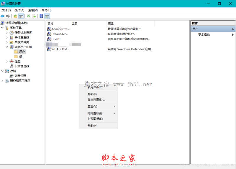 2)在右側空白處右鍵,單擊新建“新用戶”;