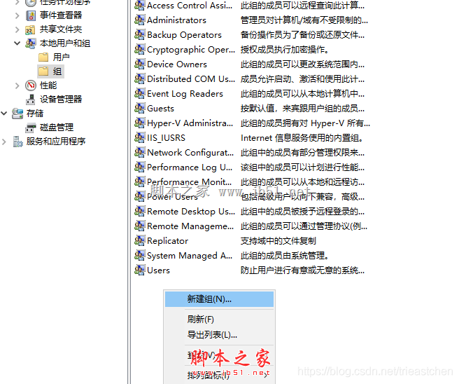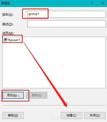 4)創建完所有需要的用戶后,單擊關閉,在左側單擊組,根據需要新建用戶組,添加剛剛新建的用戶;