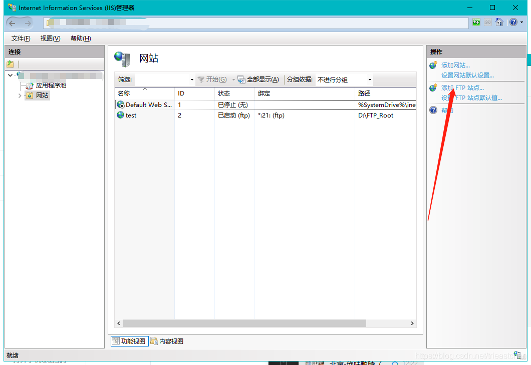 首先需要安裝FTP服務,Win10和Server打開方式不同,自行百度。