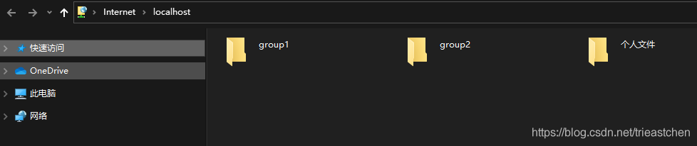 即可打開FTP文件夾,個人文件夾中具備完全權限,group1中可以上傳文件、刪除自己上傳的文件、查看他人上傳的文件,但是無法刪除他人上傳的文件。