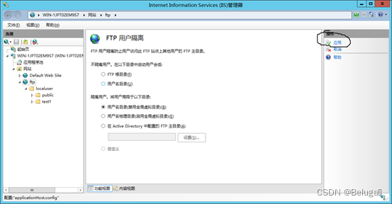 到此這篇關于Windows server 2012 iis搭建用戶隔離FTP站點的圖文方法的文章就介紹到這了,更多相關iis用戶隔離FTP內容請搜索以前的文章或繼續瀏覽下面的相關文章希望大家以后多多支持!