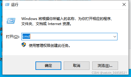 2.查看8080端口,是否被占用。Windows+R,彈出運行窗口,輸入cmd,然后Enter鍵,如下圖進入運行窗口。