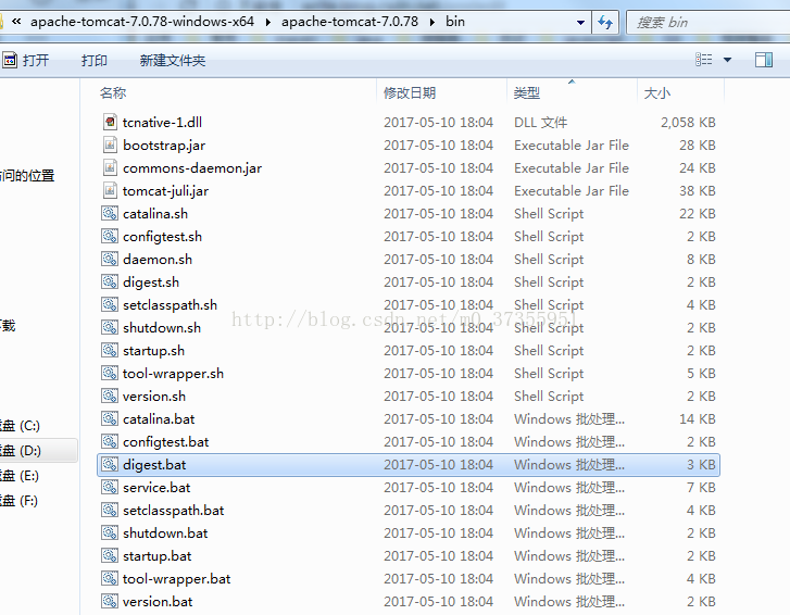 其它文件configtest.bat、version.bat、startup.bat、shutdown.bat就是catalina.bat 拆分的功能