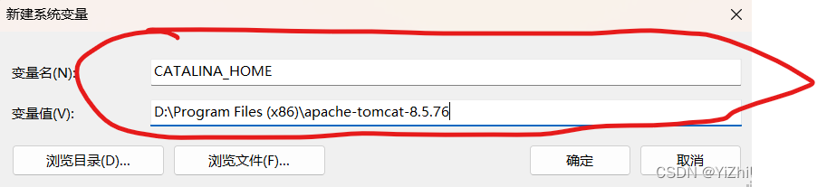 變量值填:D:\Program Files (x86)\apache-tomcat-8.5.76(tomcat文件路徑名)