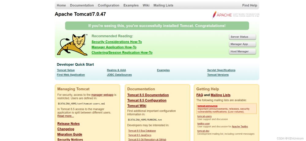 我的問題既不是端口號被占用也不是環境沒配置好,在經過反復檢查和修改后我終于發現問題在哪里了,原來之前我將tomcat的端口號改成了9091,時間久了搞忘了,然后我一直用localhost:8080訪問所以訪問不成功。最后成功的看到了小貓界面