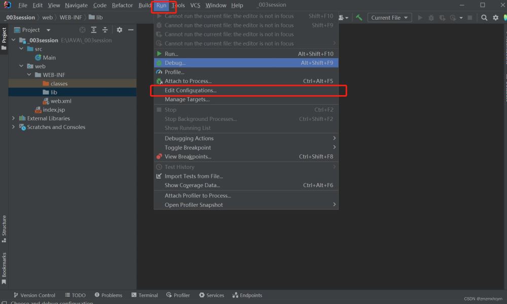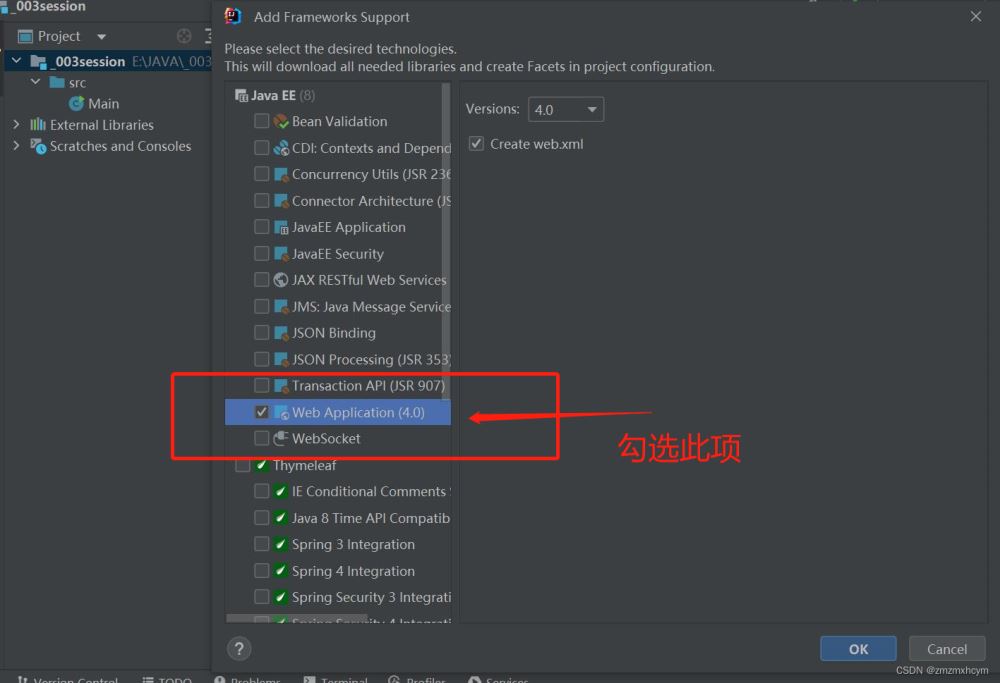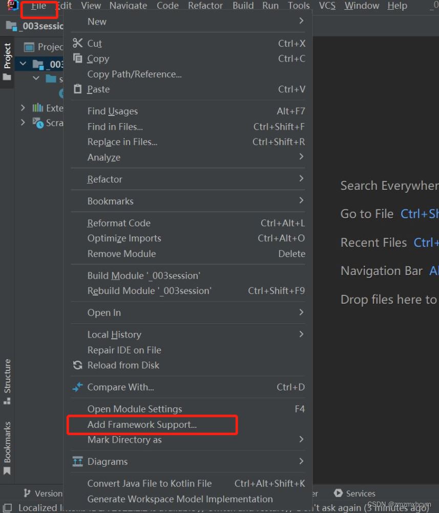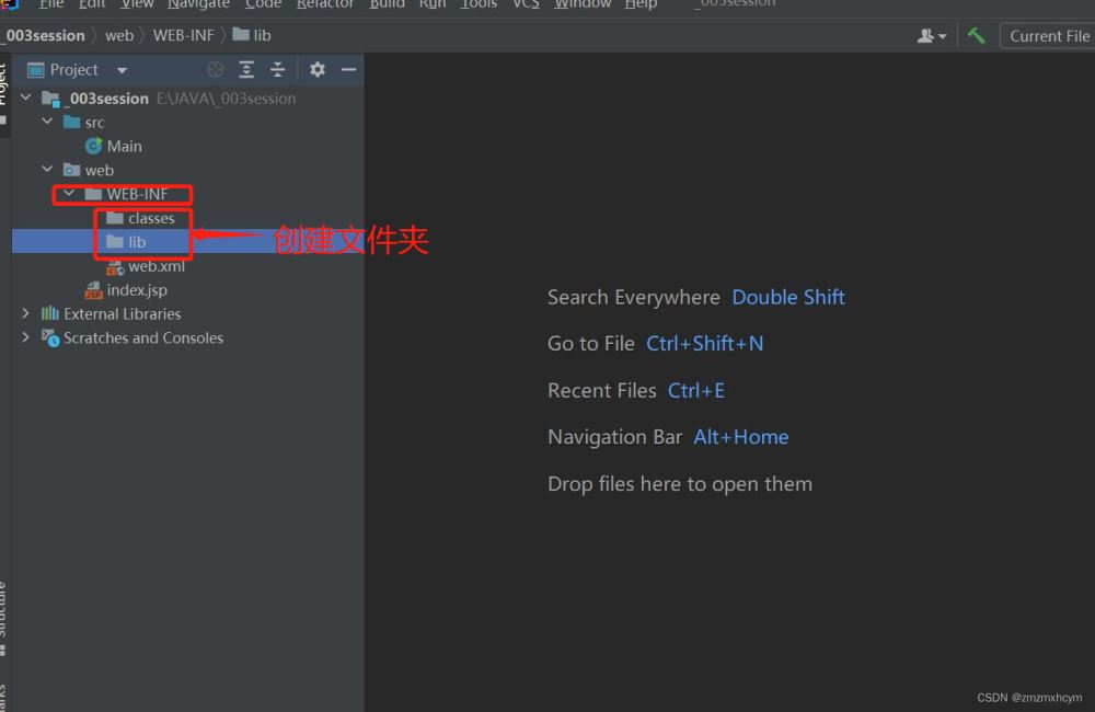 2.創建完成后按照下圖所示,依次選擇 File -> Add Framework Support -> Web Application -> 在WEB-INF文件夾下創建classes和lib文件夾