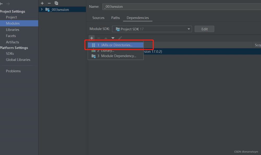 4.接著選擇Dependencies-> 選擇“+”,選擇第一個選項-> 選擇項目下的lib路徑-> 選擇jar directory