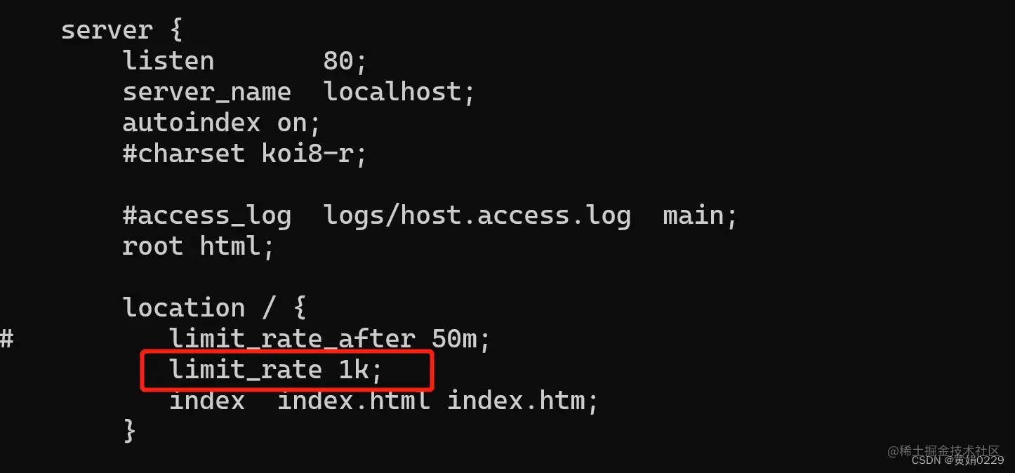需要提醒的一點(diǎn)是,盡管 limit_rate 可以一定程度上保護(hù)服務(wù)器資源,但是并不足以完全阻止惡意飽和攻擊。因此,在考慮流量控制和限速的同時(shí),還應(yīng)該結(jié)合其他安全和防護(hù)機(jī)制來(lái)更好地保護(hù)服務(wù)器。