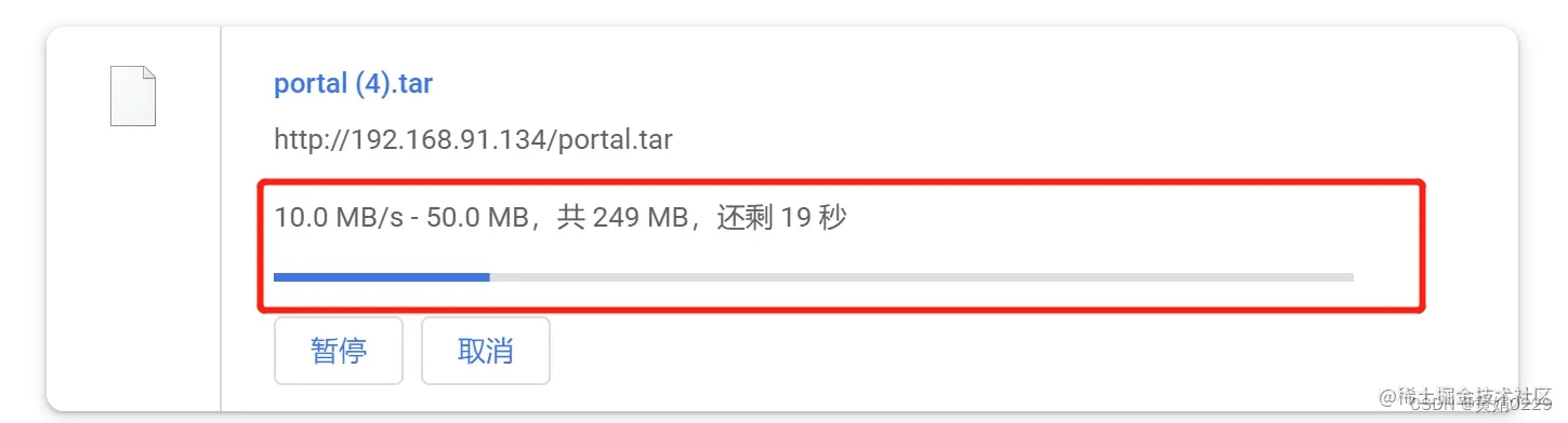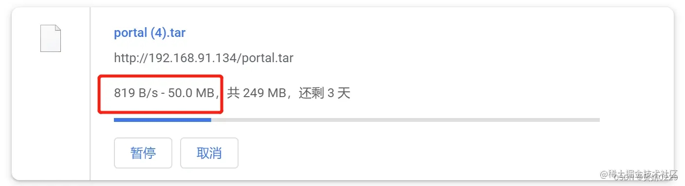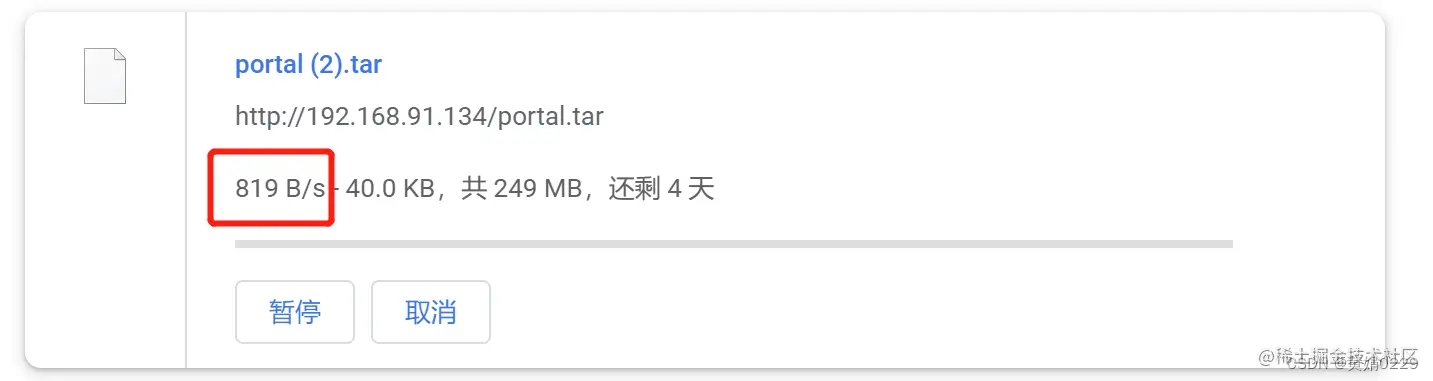 在瀏覽器輸入 http://192.168.91.134/portal.tar 下載 portal.tar 文件 可以看到下載速度在 1k 以內(nèi)
