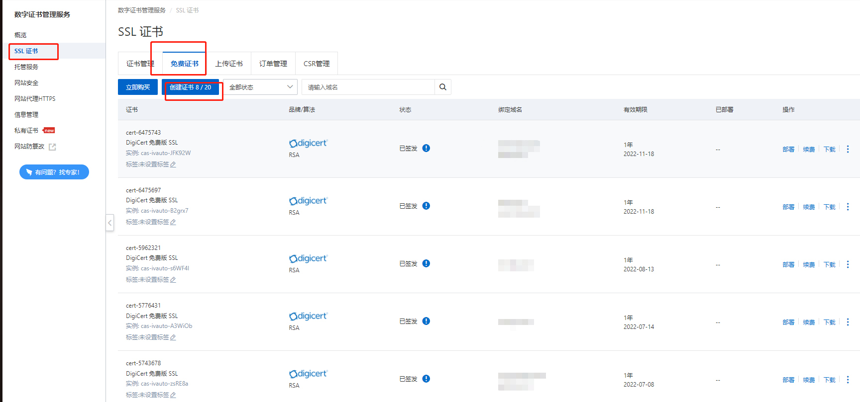 創(chuàng)建阿里云的免費(fèi)證書