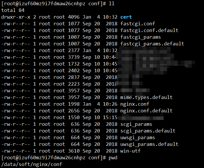 連接服務(wù)器,將下載的證書Zip文件發(fā)到nginx/conf文件夾下,我個(gè)人的習(xí)慣是在conf文件夾下新建了cert文件夾,專門用來放ssl證書的