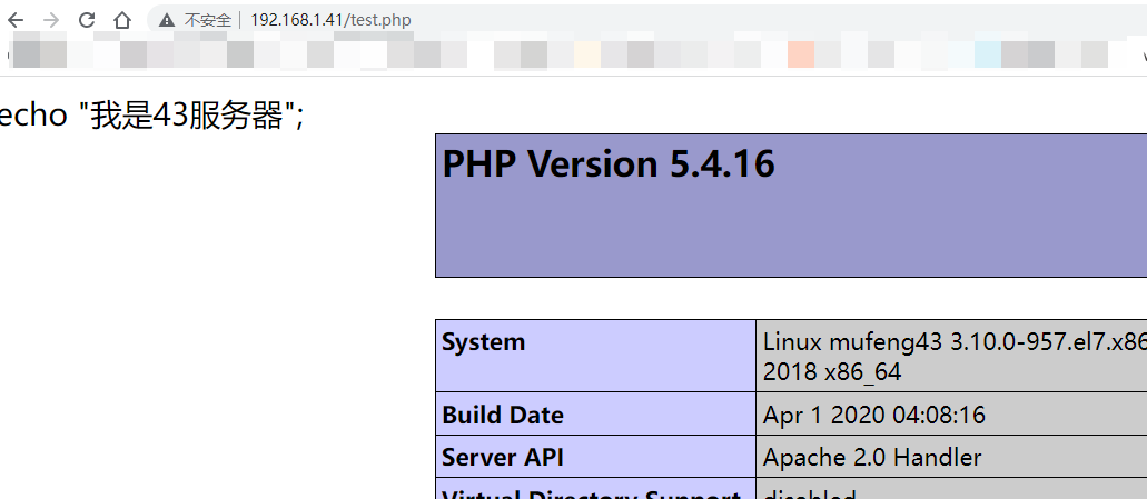 [root@mufeng43 ~]# cd /var/www/html/[root@mufeng43 html]# vi mufeng.php[root@mufeng43 html]# cat mufeng.php echo "我是43服務器";<?phpphpinfo();?>