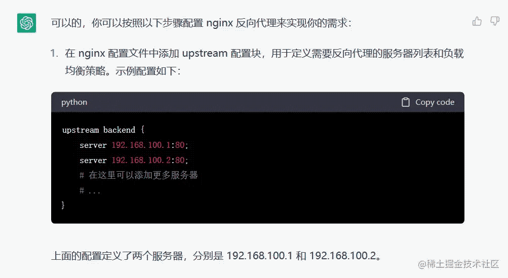 接著 ChatGPT 就給出了 nginx 的配置