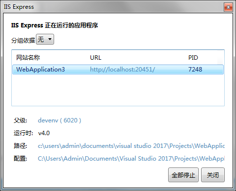 新版本的VS的IIS Express路徑好像有變化,但通過IIS Express的管理器依然可以很容易找到