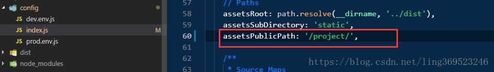 assetsPublicPath: "/project/"-----------------------assetsPublicPath: "/project1/"