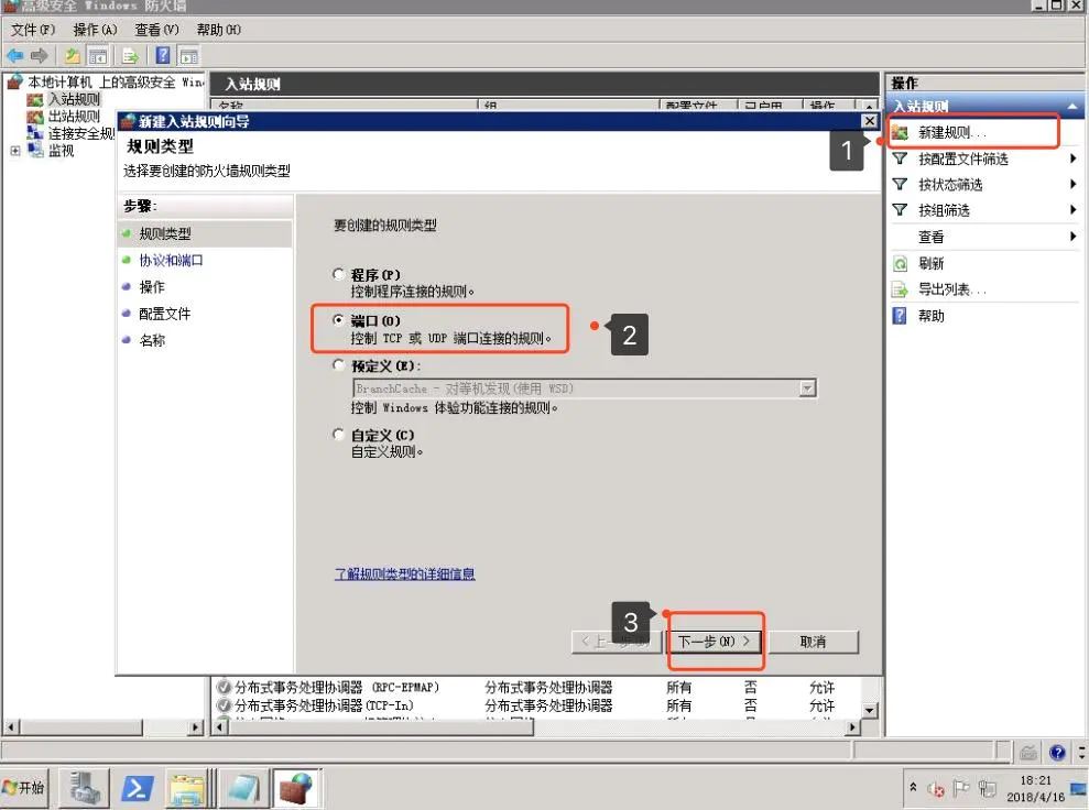 增加規則-點擊在 Windows 高級安全防火墻 微軟管理控制臺(英語:Microsoft Management Console,簡稱MMC) 中的新建規則按鈕,開始啟動新規則的向導。