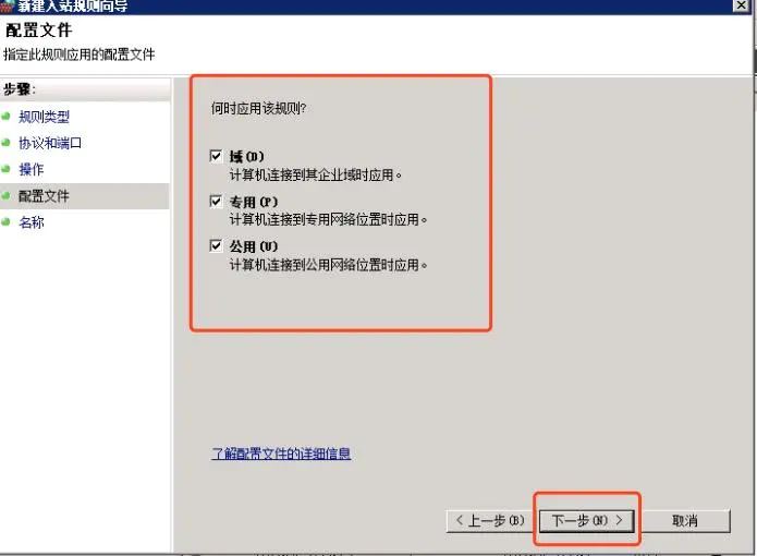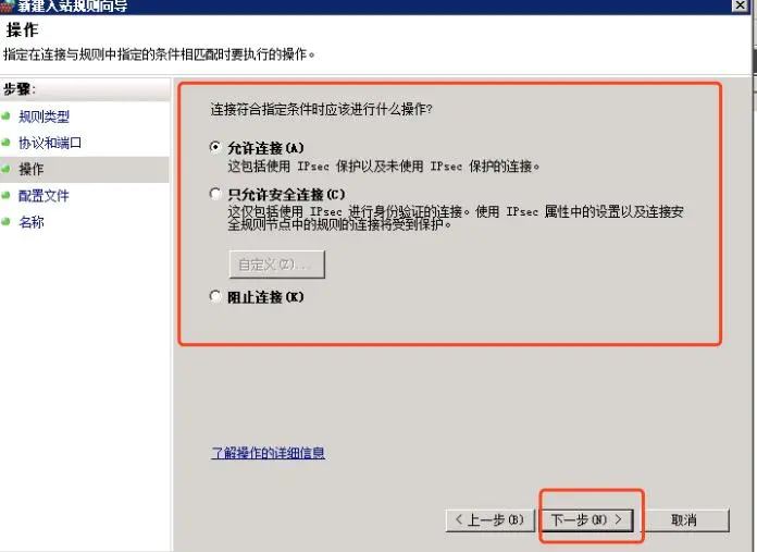 4、高級規則配置:你可以針對 Windows Server 上的各種對象創建防火墻規則,配置防火墻規則以確定阻止還是允許流量通過具有高級安全性的 Windows 防火墻。