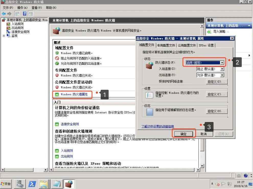 至此,我們已經可以配置windows Server 2008 的防火墻啦。