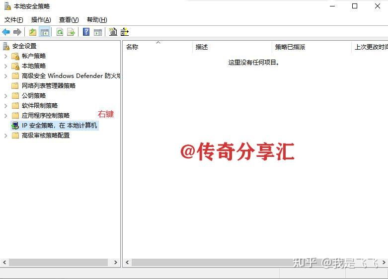 2、在本地安全策略中找到IP安全策略,在本地計(jì)算機(jī),在其上方點(diǎn)擊右鍵,在彈出的菜單中點(diǎn)擊管理IP篩選器列表和篩選器操作