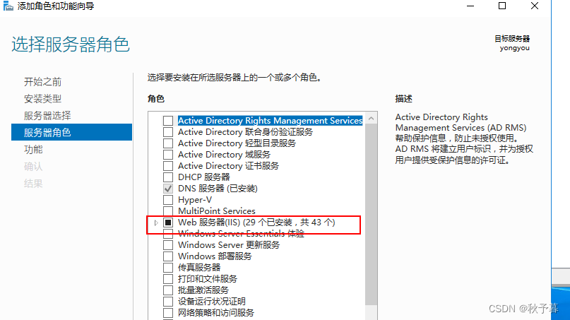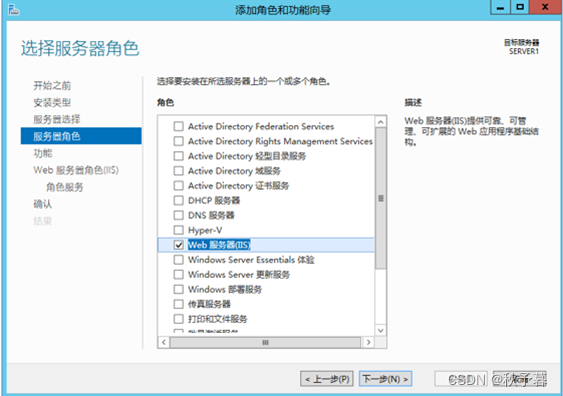 2)勾選“Web服務器(IIS)”,按照提示完成安裝