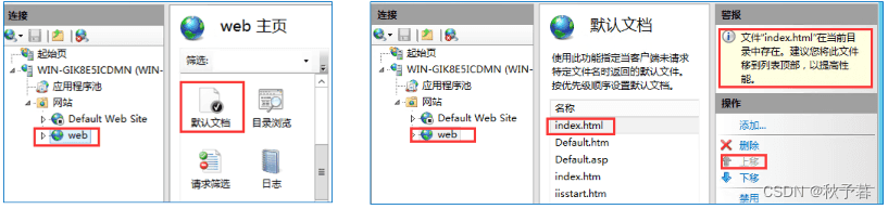 即訪問此網站目錄時,IIS提供給瀏覽器的第一個文檔大多數網站將index.html作為首頁