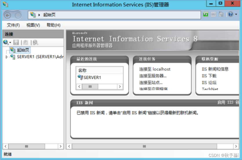 成功安裝“Web服務器(IIS)”角色后,在服務器管理器左側會多出一欄“IIS”,或者也可以Win+R執行inetmgr快速調出IIS管理器