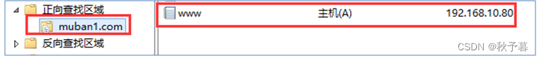 1)添加正向查找區域www.muban1.com 192.168.10.80