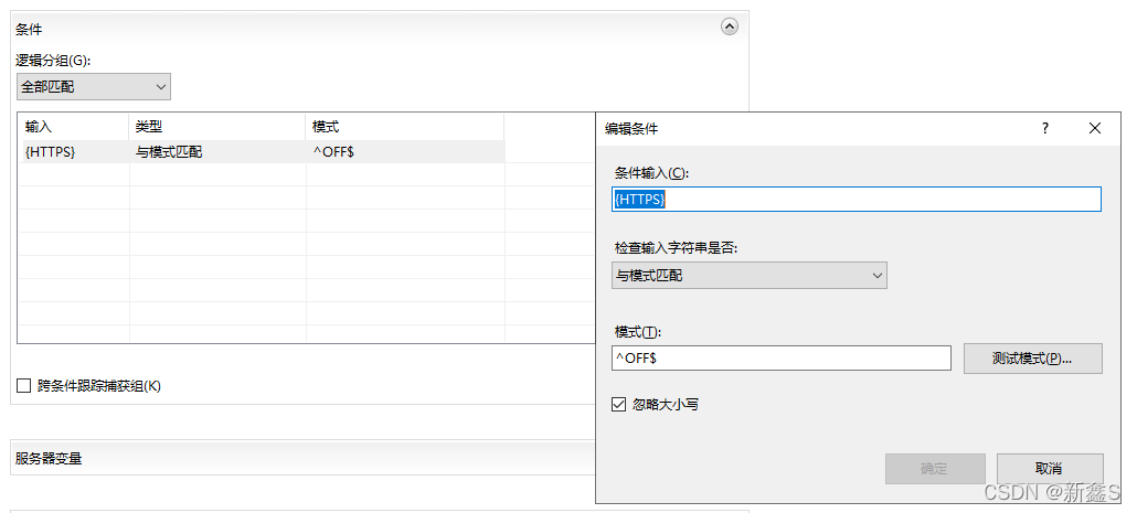 <rewrite> <rules><rule name='xinxin' stopProcessing='true'> <match url='(.*)' /> <conditions><add input='{HTTPS}' pattern='^OFF$' /> </conditions> <action type='Redirect' url='https://{HTTP_HOST}/{R:1}' redirectType='Permanent' /></rule> </rules></rewrite>這些代碼對(duì)應(yīng)的就是第一種方法保存后的邏輯代碼,其中的name值對(duì)應(yīng)的就是上面我們自定義的規(guī)則名稱。