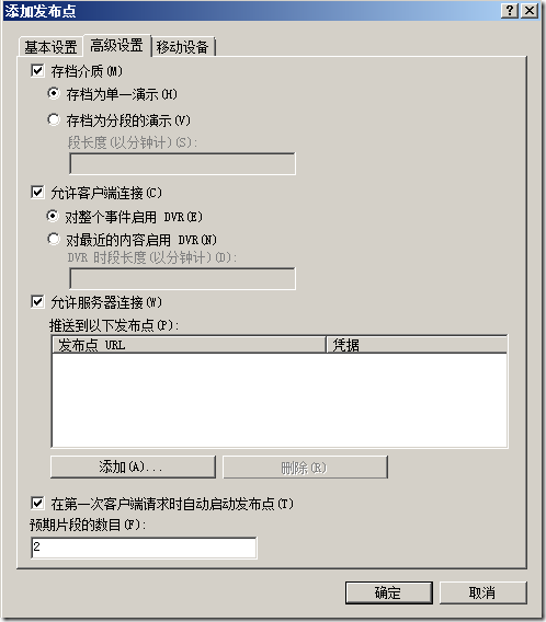 “拉”選項是從另一個Live Smooth Streaming服務器獲取節目源內容,這樣可以做到多服器分布負載,形成服務群集。