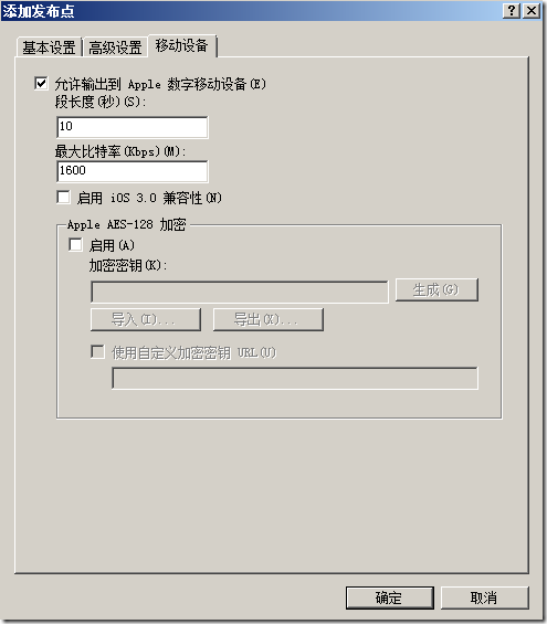 5、如果想讓LiveSmoothStream 支持Apple的移動數字設備播放實時視頻廣播,可以在 移動設備 選項卡上,選擇“允許輸出到Apple數字移動設備(E)”選擇框。