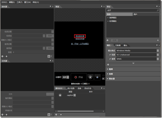 2、 打開Expression Enconder 4.0工作窗口,首先點擊中間預覽部分的 添加實時源