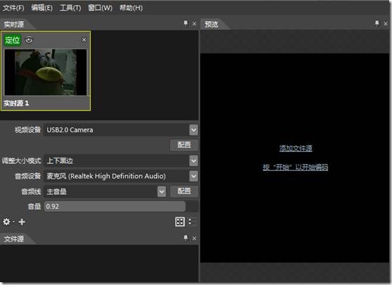 在左側的實時源窗格中選擇實時源的視頻設備以及音頻設備
