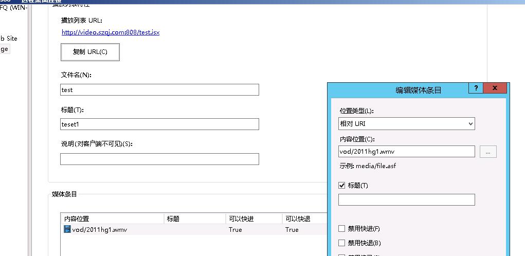 <embedsrc='http://video.szqj.com:808/test1.isx' wmode='opaque' mode='transparent' allowfullscreen='true' allowscriptaccess='always' quality='high'/></EMBED>到此這篇關于Windows Server 2012 基于iis的流媒體服務器的搭建圖文方法的文章就介紹到這了,更多相關iis流媒體服務內容請搜索好吧啦網以前的文章或繼續瀏覽下面的相關文章希望大家以后多多支持好吧啦網!